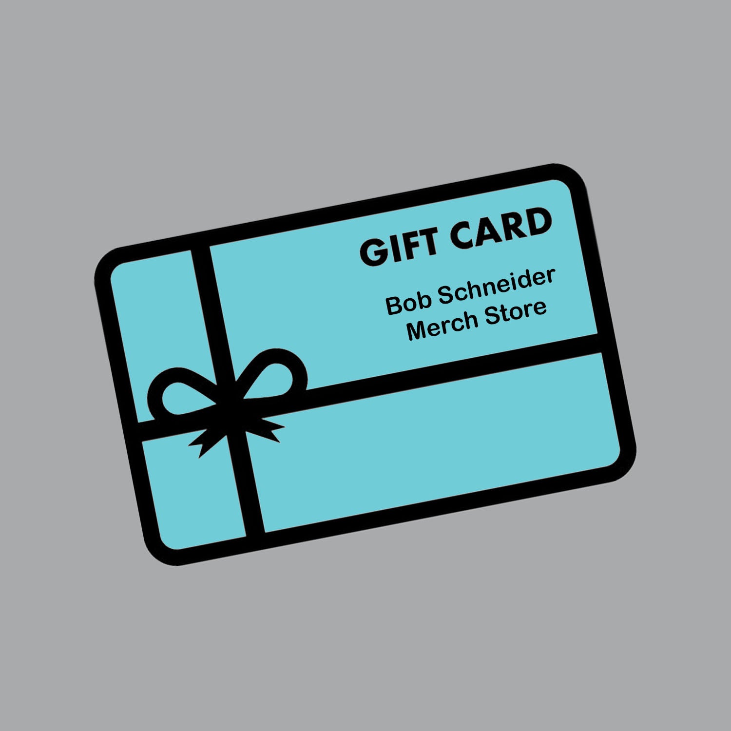 A gift card that may be applied toward the cost of any items at the Bob Schneider Merch Store. The gift card does not cover any applicable taxes or shipping costs. The customer using the gift card is responsible for those costs.