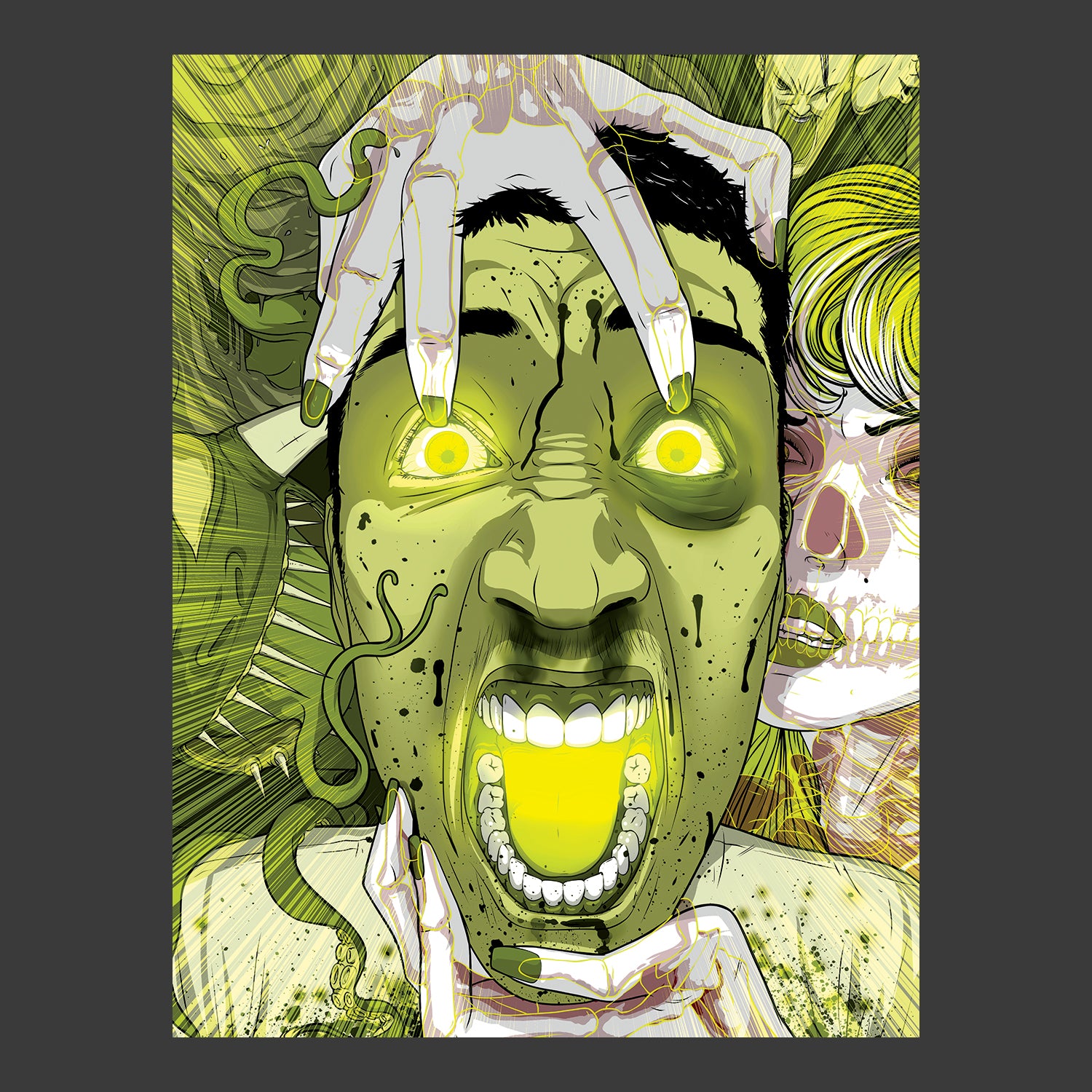 Limited Edition FAYM Fine Art Print : "Wake Up". A companion item to the FAYM Graphic Novel. This is a silkscreen print of a Justin Barker (http://www.justinbarkerart.com/) design. 24" x 18". Signed by Bob and Justin. Shipped rolled in a poster tube.